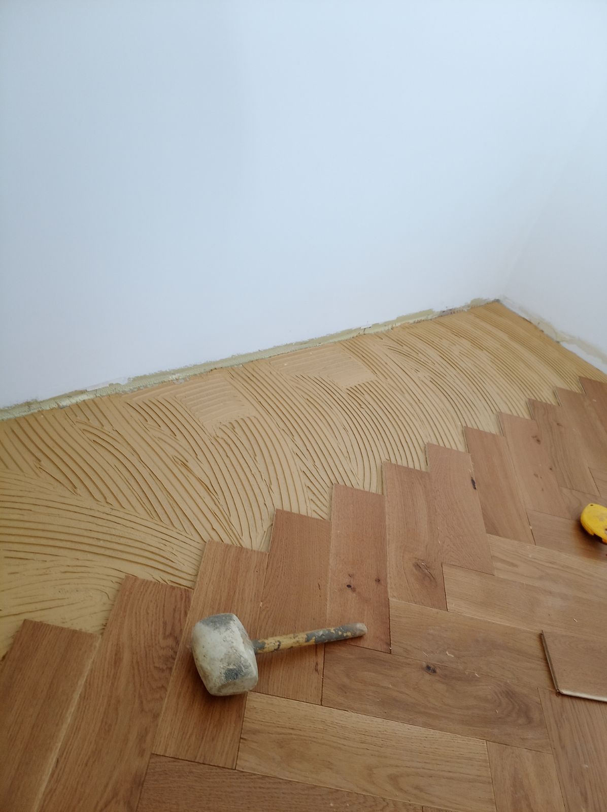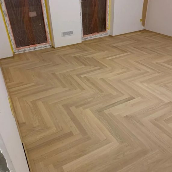 Pose de parquet collé en bâtons rompus